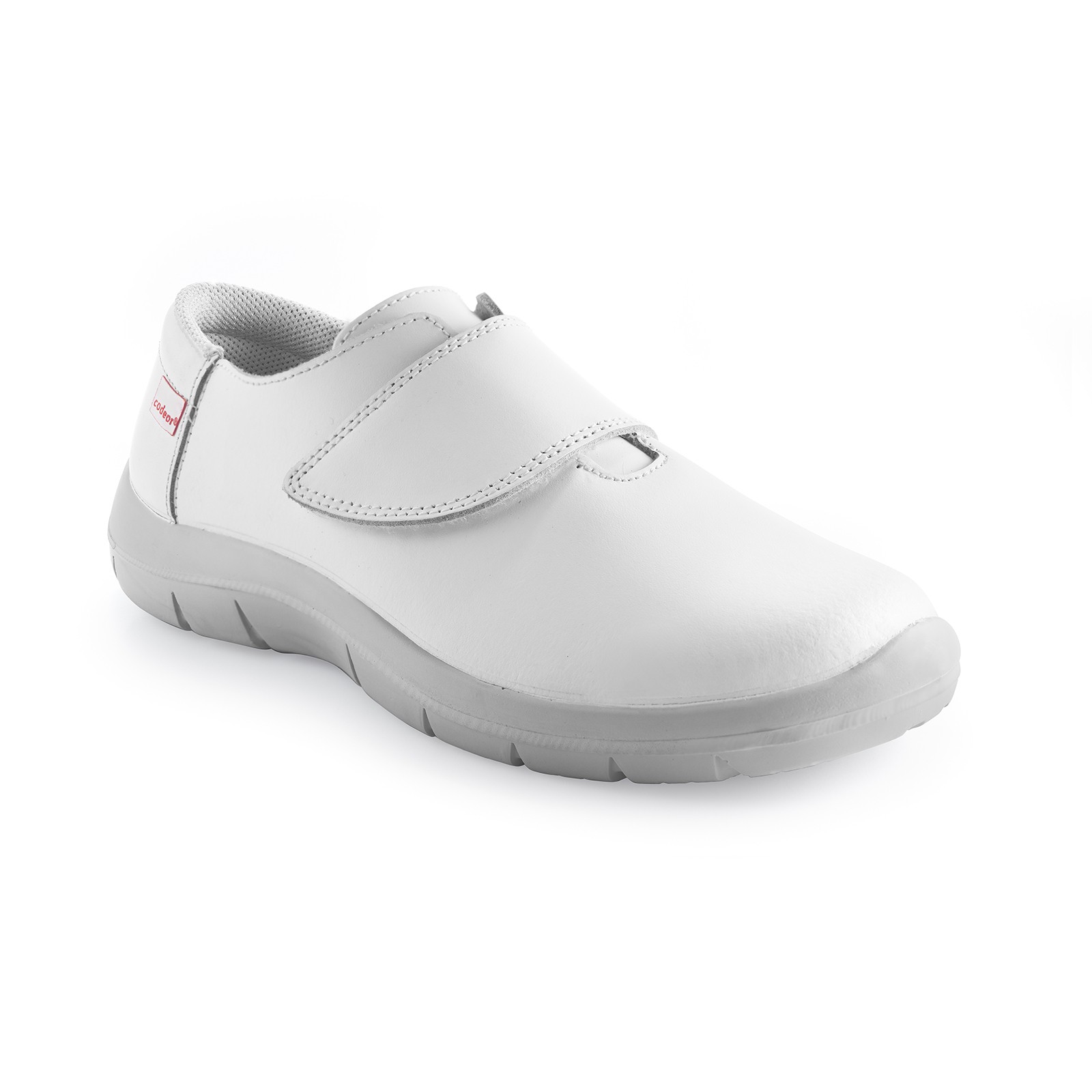 Zapato laboral Sumo de CODEOR, unisex, ultraligero y ergonómico. Fabricado en una sola pieza por inyección directa, sin costuras ni pegamentos. Antideslizante, flexible, lavable y de gran confort térmico. Corte en piel para un acabado elegante. Ideal para hostelería y sanidad. Horma que favorece el apoyo plantar y distribución del peso. Cumple con normativa EN ISO 20347:2012 SRC. Tallas 35 a 47.