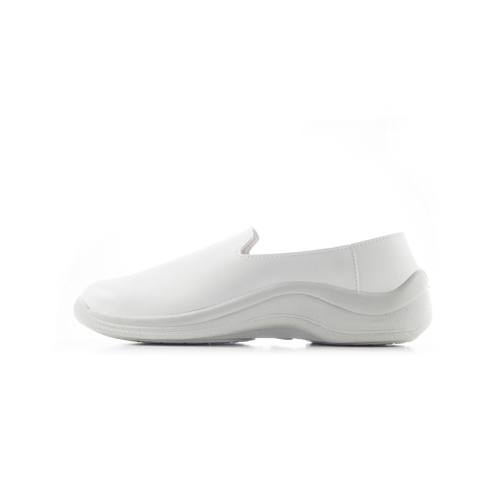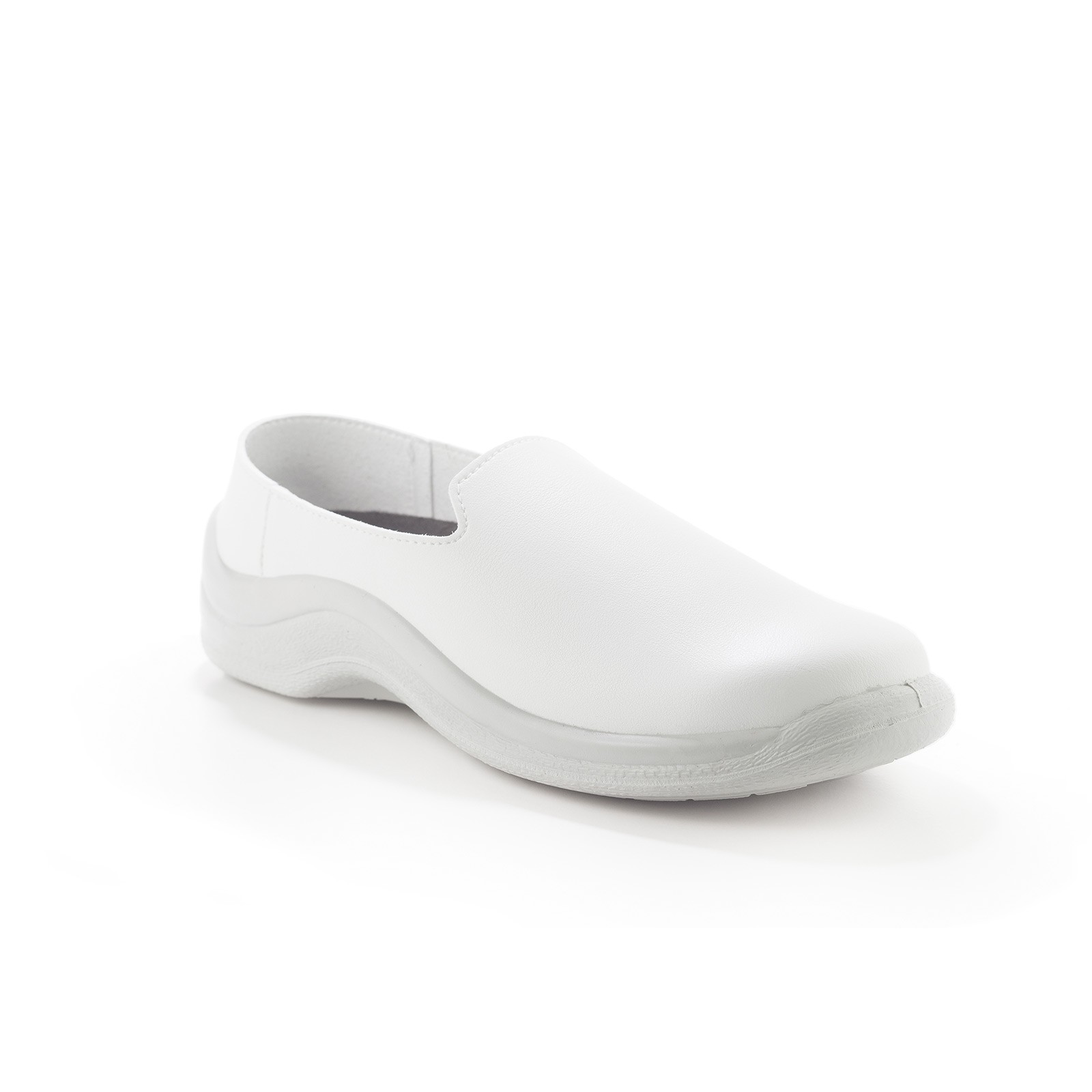 Calzado profesional unisex fabricado en una sola pieza por inyección directa, sin costuras ni pegados. Ligero, flexible, lavable, antideslizante y antiestático. Con suela de PU de densidad única para mayor resistencia e impacto. Horma ergonómica que distribuye el peso sin comprimir. Ideal para hostelería, limpieza y sectores profesionales. Certificado bajo la norma EN ISO 20347.