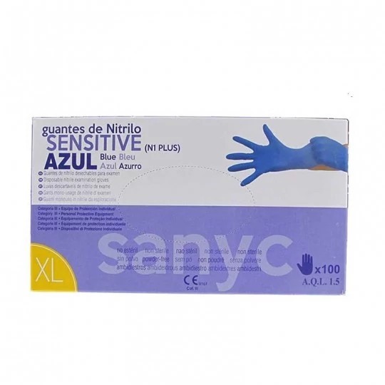 Guantes de nitrilo azul, sin polvo, de 3,5 g. Disponibles en tallas S, M, L y XL. Aptos para sectores como alimentación, HORECA, médico-sanitario, automoción e industria en general. Alta resistencia y comodidad. Estuche de 100 unidades a solo 3,63 €. Ideales para uso profesional y particular.